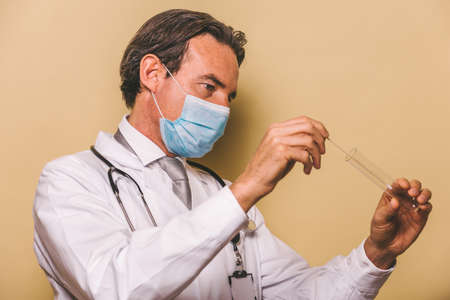 Doctor in protective making blood tests for Coronavirus COVID-19 analyzing. Vaccine from, flu, coronavirus, ebola.