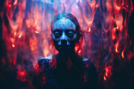 an image of a woman with a face painted in red and blue