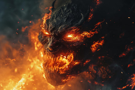 Fire monster. Evil horror flame. Generate Ai