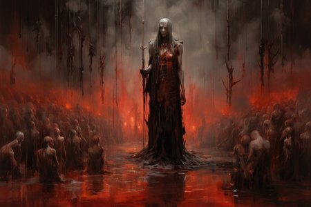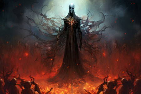A mysterious and powerful necromancer, raising armies of undead - Generative AI