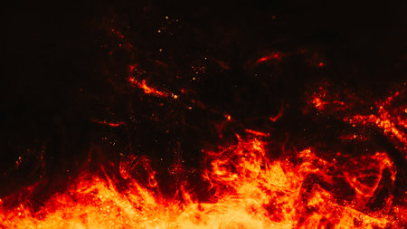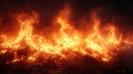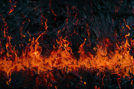 Vibrant fire texture against dark backdrop for striking visual contrast and energy