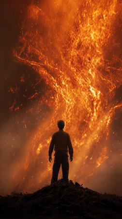 Silhouette Before Raging Fire