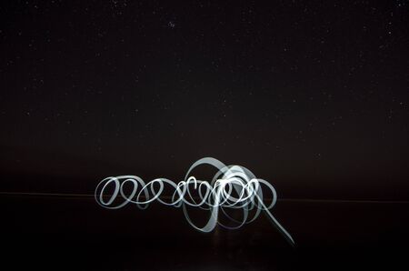 Night sky with stars and milky way over the lake. Long exposure photograph.