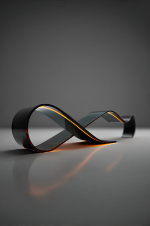 Futuristic infinite loop sculpture against a sunset backdrop. Generative AI