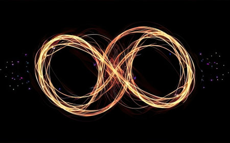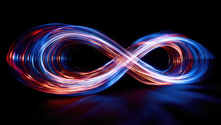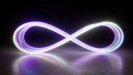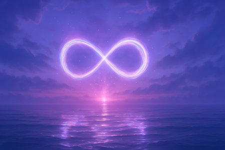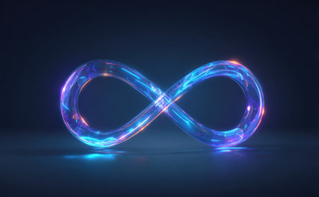 A glowing infinity symbol made of light, suspended in a dark background, creating a sense of endless possibility and eternity.