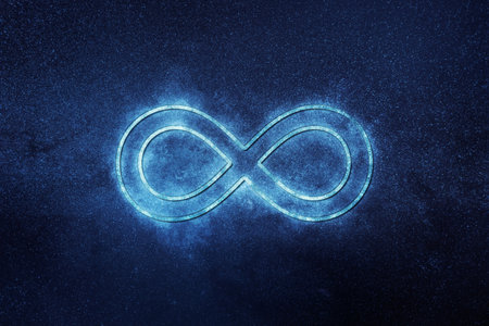 infinity sign with blue glow against dark galactic sky