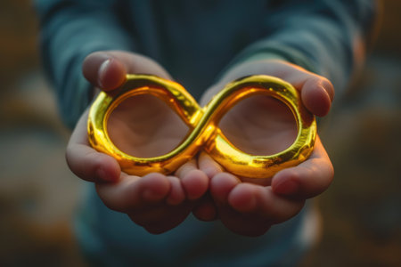 Limitless Dreams: Youngster Grasping Golden Infinity Symbol