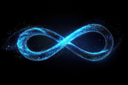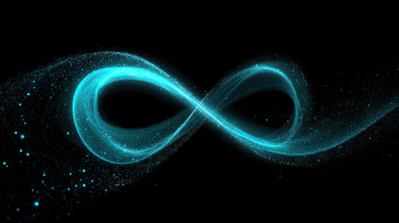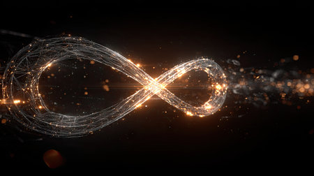 A mesmerizing glowing infinity symbol crafted from sparkling particles set against a dark background, representing eternity and limitless possibilities.