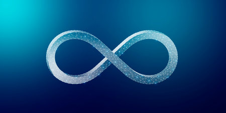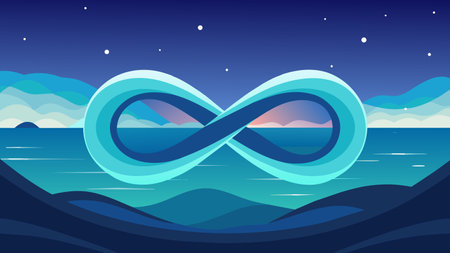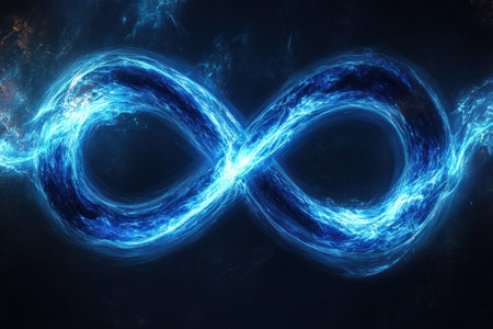 This stunning blue infinity symbol is crafted from sparkling particles against a dark background, representing endless possibilities and creativity.