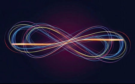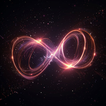 The image displays an abstract, glowing infinity symbol comprised of light particles. It is against a dark background.