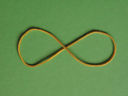 rubber band as an infinity symbol over green background