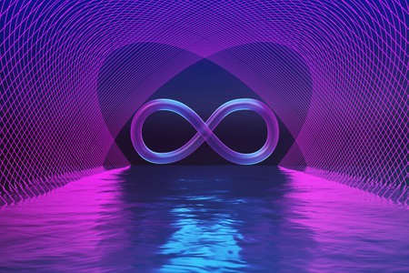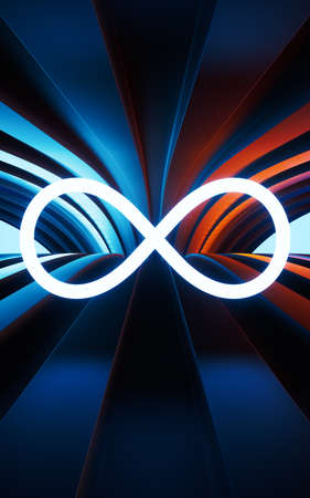 Infinity symbol glowing in the night sky. 3D rendering.
