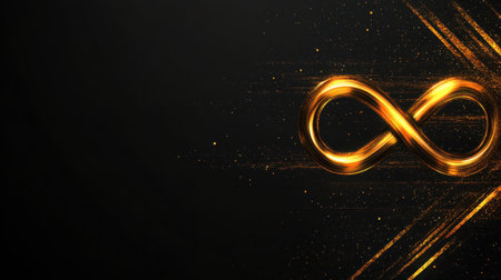 An Elegant golden infinity symbol on dark background with sparkles