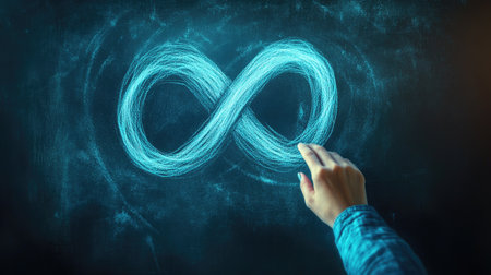 A hand-drawn infinity symbol on a chalkboard, surrounded by soft, ambient light, creating a feeling of infinite potential and possibility.