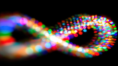 Abstract image of a multi-colored infinity symbol created by blurred, circular lights against black