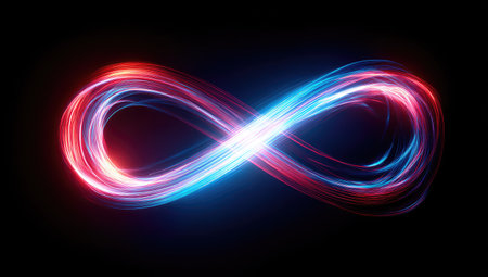 This captivating infinity symbol features vibrant, flowing light trails against a dark background, perfect for conveying concepts of eternity, creativity, and limitless potential.
