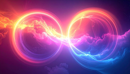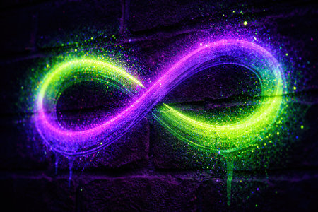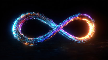 A stunning abstract representation of an infinity symbol, illuminated with vibrant neon colors, captures the essence of endless possibilities and connectivity.