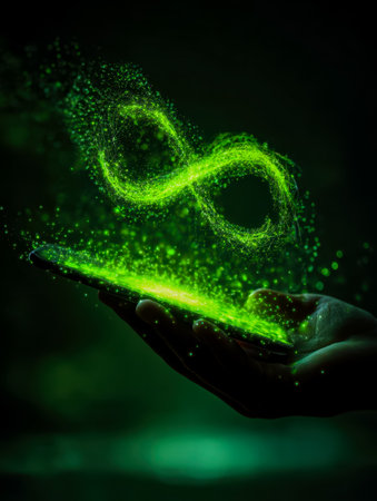 A luminous, swirling loop projects from a sleek smartphone, symbolizing limitless connections and boundless digital possibilities.