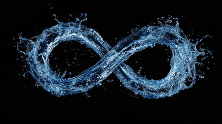 This captivating image showcases flowing water forming an infinity symbol, set against a dark background, capturing the essence of movement and fluidity.