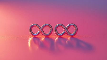 An abstract infinity symbol is presented against a stark black backdrop. It's rendered in vibrant neon colors, primarily pink and blue, with gradients suggesting depth and dimension. The image's clean lines and modern design lend themselves to various creative and commercial applications. The artwork implies concepts of eternity and continuous flow.