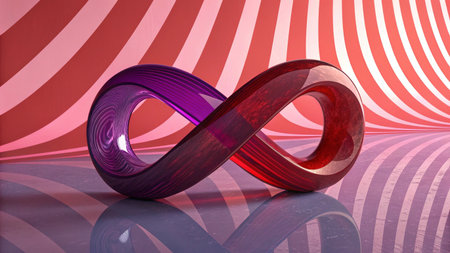 3d illustration of red and purple infinity loop over abstract striped background