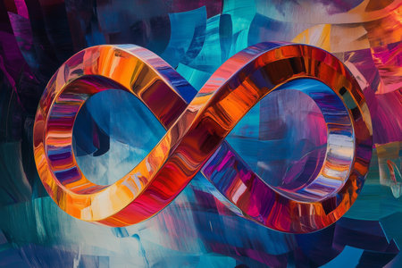 Vibrant infinity symbol amidst a kaleidoscopic backdrop symbolizing endless connections and motion