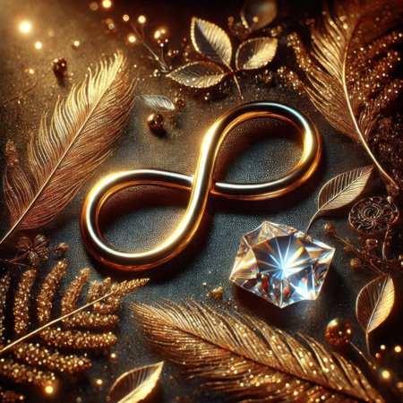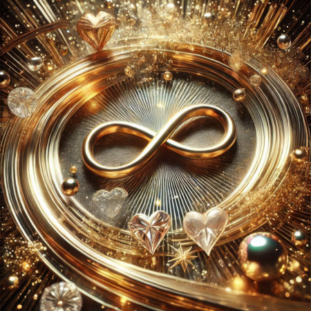 This visually striking image features a golden infinity symbol composed of various icons representing wealth and success, perfect for business themes.