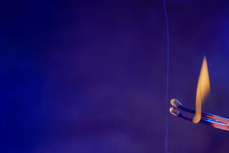 Lit matches and blown out in the studio photographed with colorful foils before the flashes