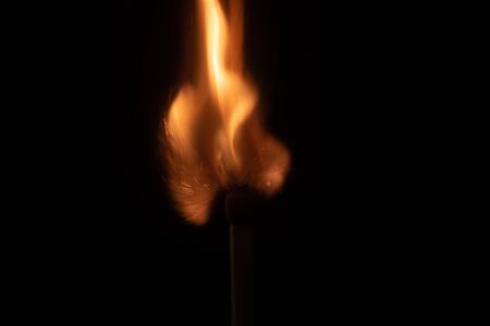 Burning match on a black background, its vibrant orange glow representing warmth, ignition, and potential energy.