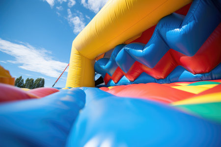 close-up of the inflating process of a bounce house, created with generative ai
