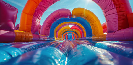 Colorful Inflatable Tunnel at Outdoor Amusement Park. Generative AI