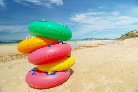 colorful rubber ring on the beach