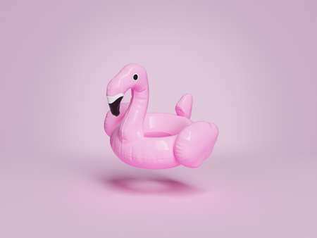 minimalistic scene of a flamingo float suspended on a pink background. 3d rendering