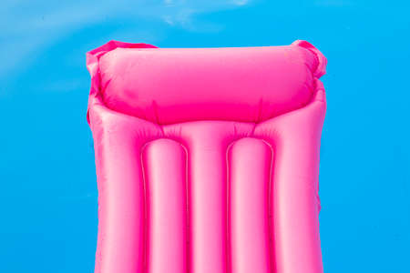 Pink air mattress in swimming pool. Holiday background. outdoors