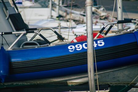 MONTEVIDEO, URUGUAY, OCTOBER - 2021 - Warship inflatable boat exhibited at heritage day, montevideo, uruguay
