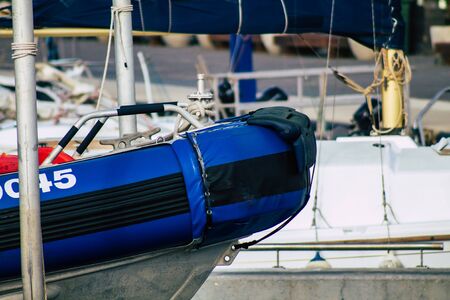 Limassol Cyprus March 17, 2020 Closeup of boats moored in the marina of Limassol in the afternoon