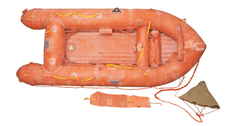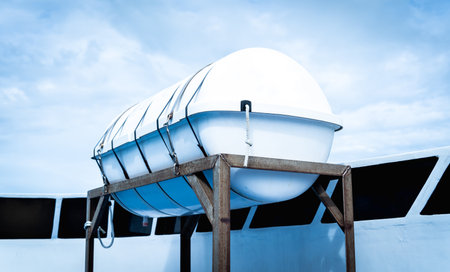 A lifeboat with an engine and steering mechanism on the upper deck of the ship. A ship's lifeboat is a collective rescue vehicle used to evacuate a ship.