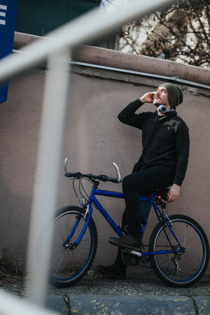 Young man enjoying a break during city bike ride on sunny day