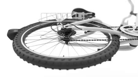 Rear wheel of a white bicycle close-up, 3d illustration