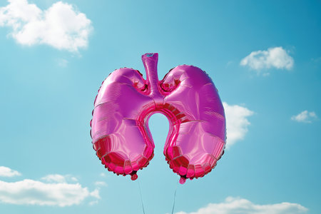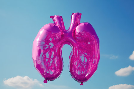 Globally Illuminated Pink Balloon in Lungs Shape on Clear Day