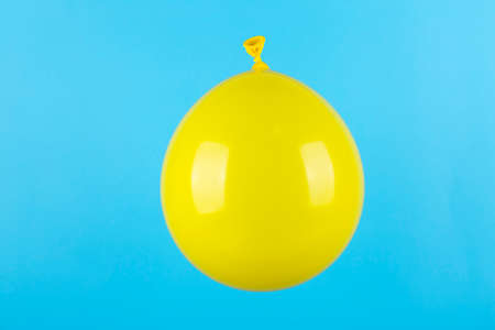 Bright yellow balloon on pastel blue background