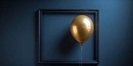 AI Generated. Golden and black balloon frame on dark blue background
