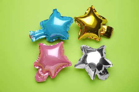Beautiful different balloons on green background