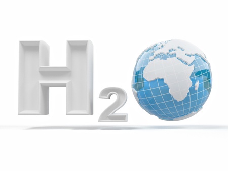 Chemical symbol of water on an white background