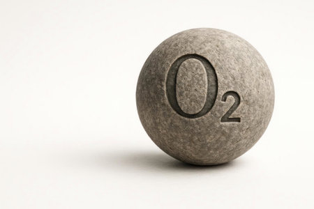 Stone ball engraved with O2 on a light background. Space for text