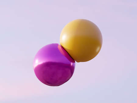 3d render of two balls collision. Purple and yellow colors