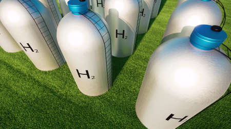 H2 Green clean renewable energy storage system Ecological future Blue sky Sustainable energy 3d render