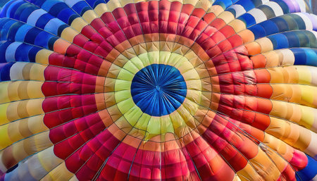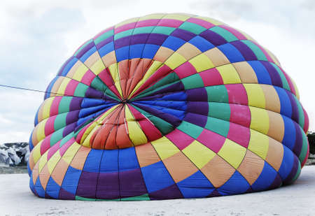 Colorful hot air balloon in the blue sky, close-up