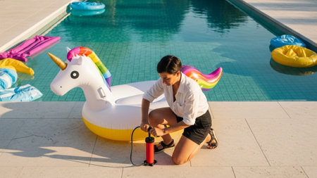 fun summer ways to spend time in the pool with inflatable lifebuoys learning to swim or sunbathing in the sun resting and relaxing