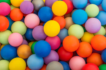 Full frame of multicolored plastic balls in the ball pit (ball crawl). Lots of colorful balls for children to play in the water park. Toy dry pool for kids